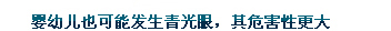 嬰幼兒也可能發(fā)生青光眼,這是與先天發(fā)育有關(guān)的一種青光眼,其危害性更大。如果新生兒或嬰幼兒眼球看上去比正常孩子大、發(fā)白,而且經(jīng)常出現(xiàn)畏光、流淚、戶外不愛(ài)睜眼等情況,要請(qǐng)醫(yī)生進(jìn)行檢查,以排除先天性青光眼的可能性。