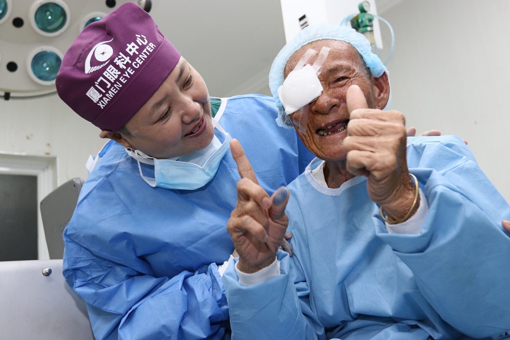 廈門眼科人還將光明帶到寧夏、西藏等地,免費為當(dāng)?shù)刎毨а奂不颊邔嵤┦中g(shù)。緬甸、柬埔寨、斯里蘭卡、尼泊爾等國也有廈門眼科人的身影。2016年,廈門眼科中心第8次走出國門,派出博士專家團隊參與“湄公河五國光明行”公益行動,為柬埔寨201名貧困患者免費實施疑難白內(nèi)障手術(shù),用光明照亮中柬友誼。