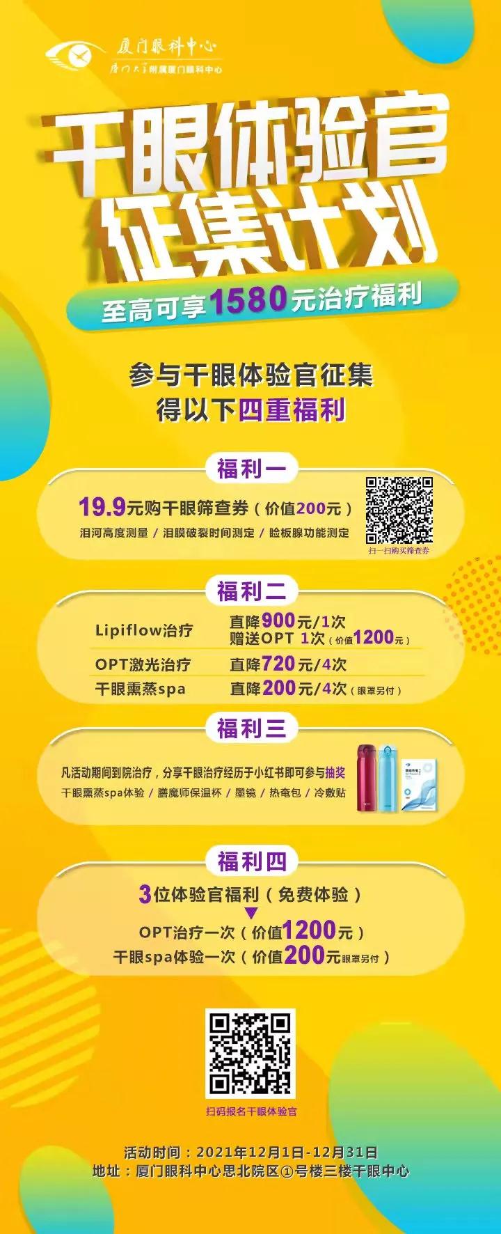 · 體驗(yàn)官福利:我們將在2022年1月5日篩選出3位干眼體驗(yàn)官,入選體驗(yàn)官可免費(fèi)體驗(yàn)價(jià)值1400元干眼治療套餐: