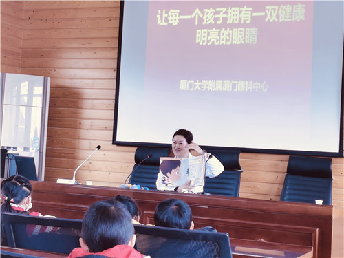 然而,在2022年新年開(kāi)工第二天(1月5日),該院門診、手術(shù)室、病房并未發(fā)現(xiàn)潘美華教授忙碌的身影。她去哪兒了?原來(lái),為貫徹落實(shí)教育部等15部門聯(lián)合印發(fā)的《兒童青少年近視防控光明行動(dòng)工作方案(2021-2025年)》要求,多方位、科學(xué)、精準(zhǔn)、長(zhǎng)效地做好廈門市兒童青少年近視綜合防控,協(xié)助學(xué)校建立近視防控體系,潘美華親自領(lǐng)銜帶隊(duì),深入同安區(qū)蓮花中心小學(xué)上陵小學(xué)教學(xué)點(diǎn)和白交祠小學(xué)教學(xué)點(diǎn),為鄉(xiāng)村孩子進(jìn)行視力篩查、科普宣教、贈(zèng)送護(hù)眼大禮包等公益活動(dòng)。