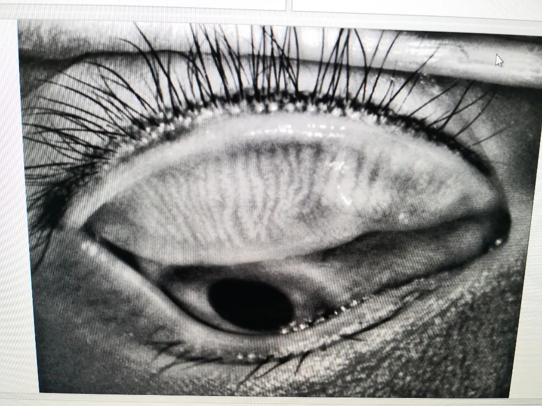 瞼板腺就是位于上下眼皮里的腺管,它是分泌油脂的地方,腺管萎縮或天生無腺管都存在瞼板腺功能異常,導致油脂不能正常分泌。淚膜中缺少脂質層,淚液蒸發(fā)速度會加快,從而導致干眼。