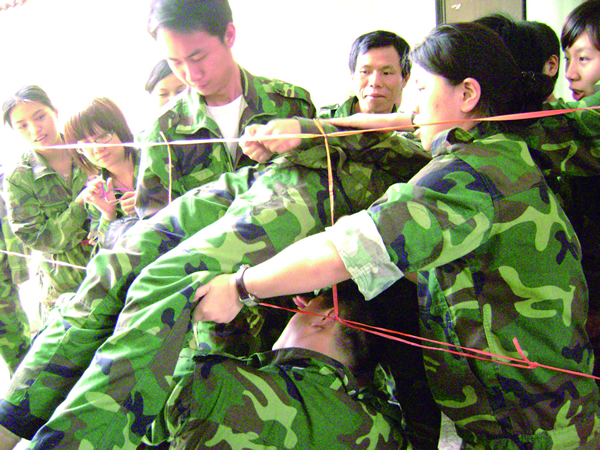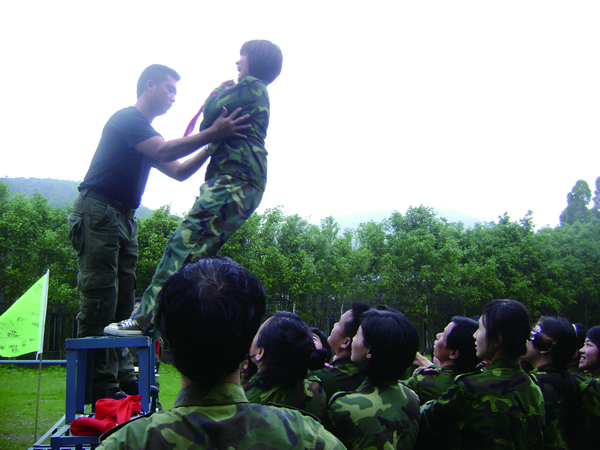 “相信大家,放心把你自己交給大家,你什么都不要想,大家會安全地把你接住”這是“信任背摔”項目的內(nèi)涵所在。項目形式是一個人站在4米高的位置,手被紅領(lǐng)巾綁住,然后在隊友“我們準(zhǔn)備好了,我們支持你,我們愛你”中從高空倒下,你的隊友們會用手臂把你安全接住,讓你感受團(tuán)隊?wèi)?zhàn)友的臂膀與赤誠。
