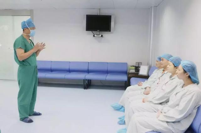 沈政偉院長為4位眼科醫(yī)生進(jìn)行術(shù)前宣教,講解術(shù)中注意事項(xiàng)