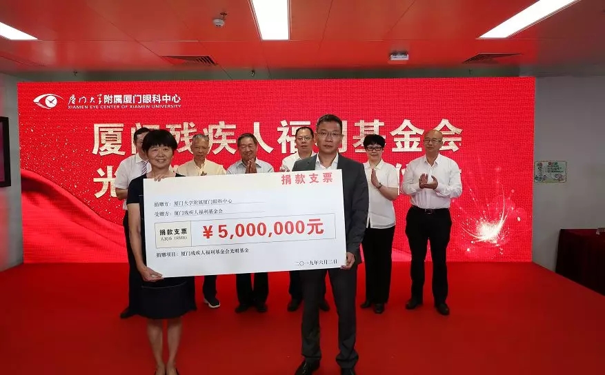 五緣院區(qū)開業(yè)儀式上,廈門眼科中心再次將“光明的信仰”傳遞——為廈門市殘聯(lián)捐款500萬元,成立專項基金,用于視力殘疾預防、眼科手術救助、盲人協(xié)會活動等。