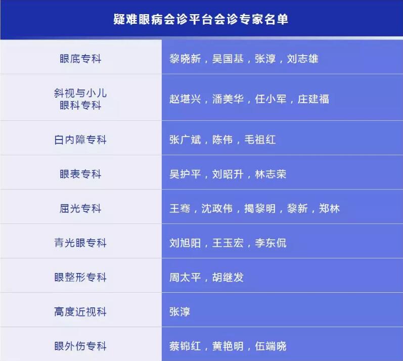 這是一個(gè)堪稱“夢之隊(duì)”的會診專家團(tuán)隊(duì),涵蓋眼底、斜視與小兒眼科、白內(nèi)障、眼表、屈光、青光眼、眼整形、高度近視、眼外傷等亞???。目前,中國大陸擁有5位國際眼科科學(xué)院院士,有兩位就在這個(gè)會診專家團(tuán)隊(duì)中,分別是廈門大學(xué)附屬廈門眼科中心總院長黎曉新教授、華廈眼科專家委員會主席趙堪興教授。