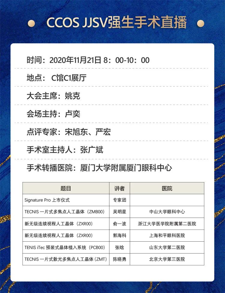 11月21日至22日,在全國眼科年會(2020CCOS)期間,4場眼科手術(shù)實操技術(shù)“云課堂”將精彩上演。面向全國眼科同道直播的近20臺手術(shù),將全部在廈門眼科中心五緣院區(qū)完成。