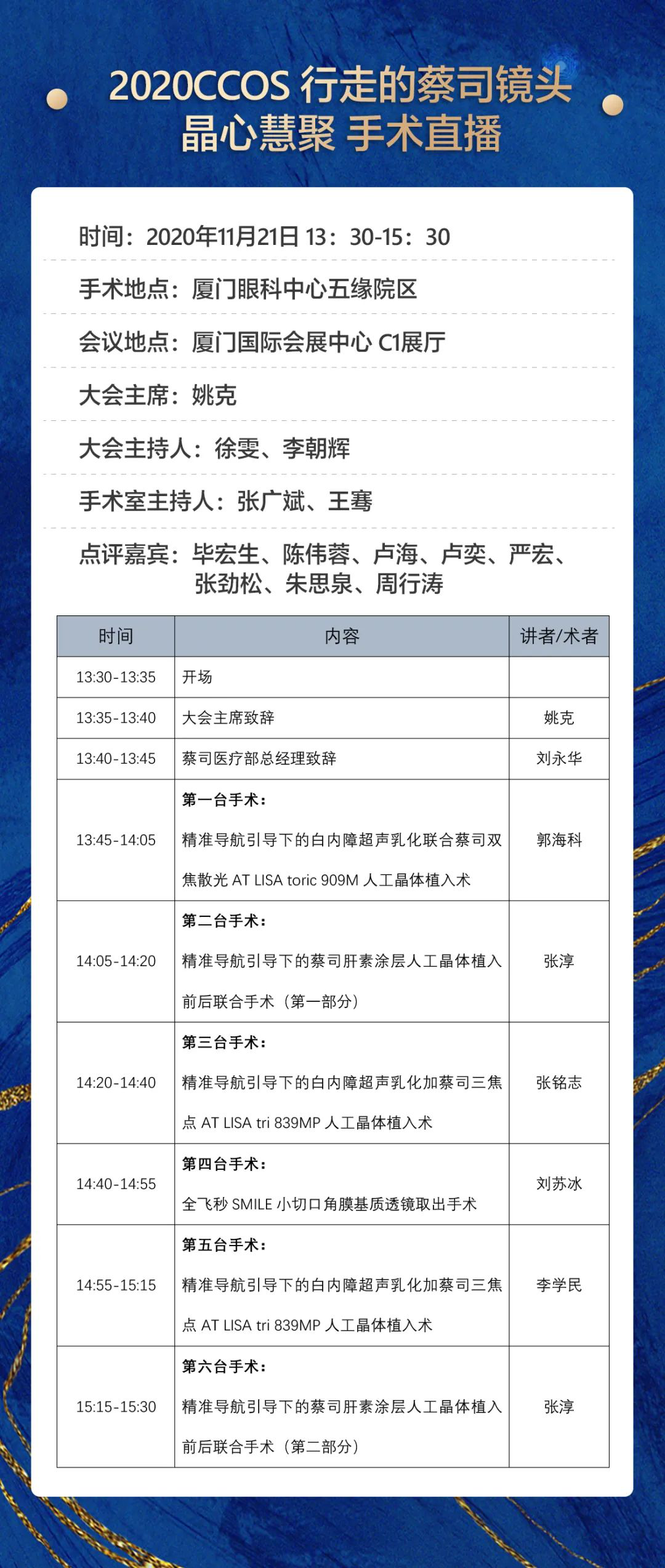 2天4場直播,近20臺眼科手術(shù),涵蓋白內(nèi)障、青光眼、眼底、屈光等學(xué)科。如此手術(shù)直播盛宴,不容錯過!