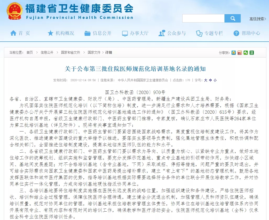 近日,根據國家衛(wèi)生健康委員會辦公廳、財政部辦公廳、國家中醫(yī)藥管理局辦公室聯合發(fā)布的《關于公布第三批住院醫(yī)師規(guī)范化培訓基地名錄的通知》(國衛(wèi)辦科教函[2020]970號)文件,確認廈門大學附屬廈門眼科中心成為第三批國家級住院醫(yī)師規(guī)范化培訓基地。
