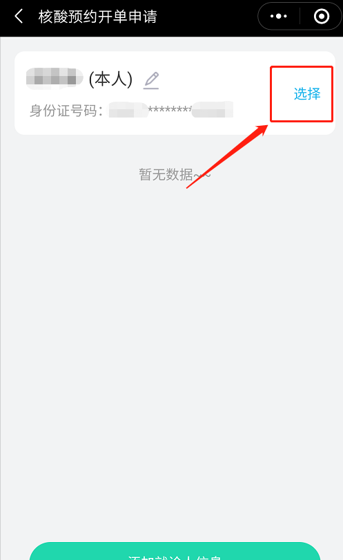 “選擇預約人”-“完善信息”