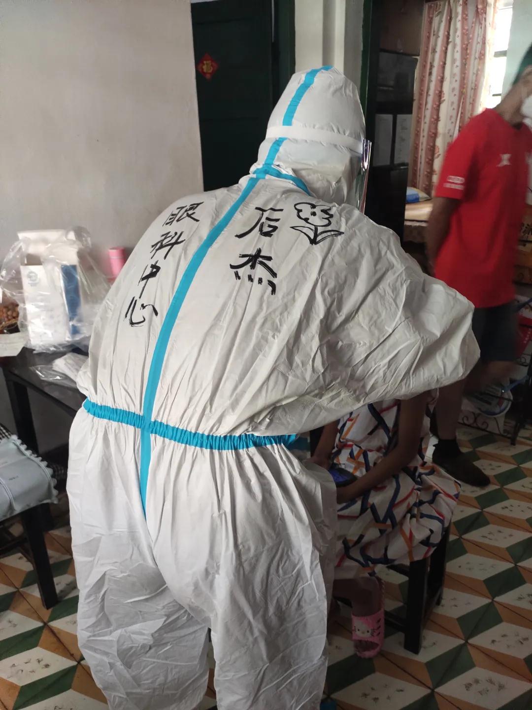 十多分鐘的路程,當(dāng)走到住戶家中時(shí),穿著防護(hù)服的后杰已全身濕透。雖然平??釔劢∩恚@段路程對他來說也略顯吃力。