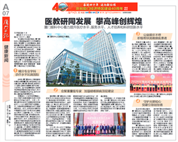 恰逢廈門(mén)經(jīng)濟(jì)特區(qū)隆重慶祝建設(shè)40周年,乘著改革開(kāi)放的東風(fēng),廈門(mén)眼科中心與特區(qū)同頻共振,著力提升醫(yī)療水平、服務(wù)水平、人才培養(yǎng)及科研創(chuàng)新水平。廈門(mén)日?qǐng)?bào)、廈門(mén)晚報(bào)、海西晨報(bào)、海峽導(dǎo)報(bào)等媒體進(jìn)行專(zhuān)題報(bào)道。