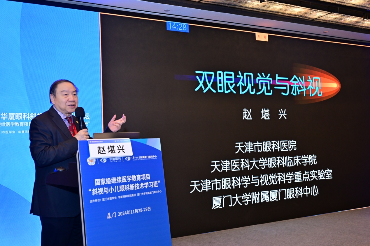 兒童階段是全生命周期眼健康管理的“黃金期”,事關(guān)國家和民族未來。開幕儀式上,國際眼科科學(xué)院院士、華廈眼科醫(yī)院集團專家委員會主席趙堪興教授代表致歡迎辭。趙堪興教授表示,多年來,為更好地推動兒童青少年近視防治工作,守護兒童青少年的眼健康,華廈眼科醫(yī)院集團、廈門眼科中心斜視與小兒眼科始終堅持聚焦近視防控和兒童致盲眼病防治,著力眼科人才培養(yǎng),不斷提升臨床診療水平,全力為兒童青少年眼病防治和眼健康發(fā)育保駕護航。此外,醫(yī)院連續(xù)多年用心舉辦兒童眼病論壇,以內(nèi)涵豐厚的學(xué)術(shù)交流為紐帶,不斷助力推動兒童眼病基礎(chǔ)研究高質(zhì)量發(fā)展,提升基層醫(yī)療機構(gòu)的服務(wù)品質(zhì),推動醫(yī)療服務(wù)同質(zhì)化。